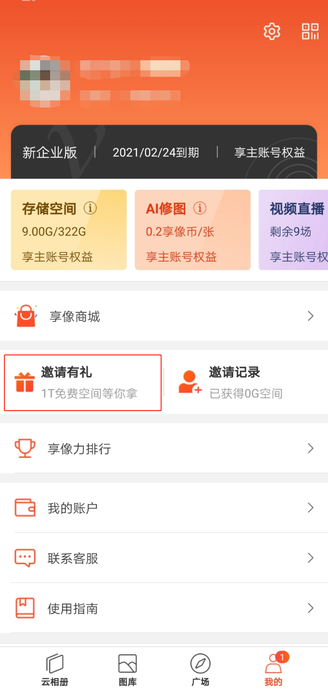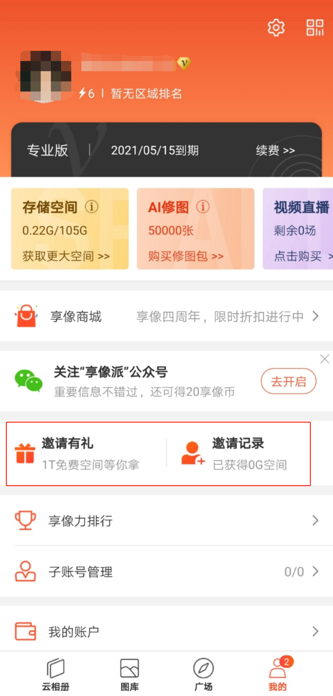 3.注意,您当前是享像派会员才能领取第2条所说的增值空间,如是免费版会员需成为会员后才能领取
