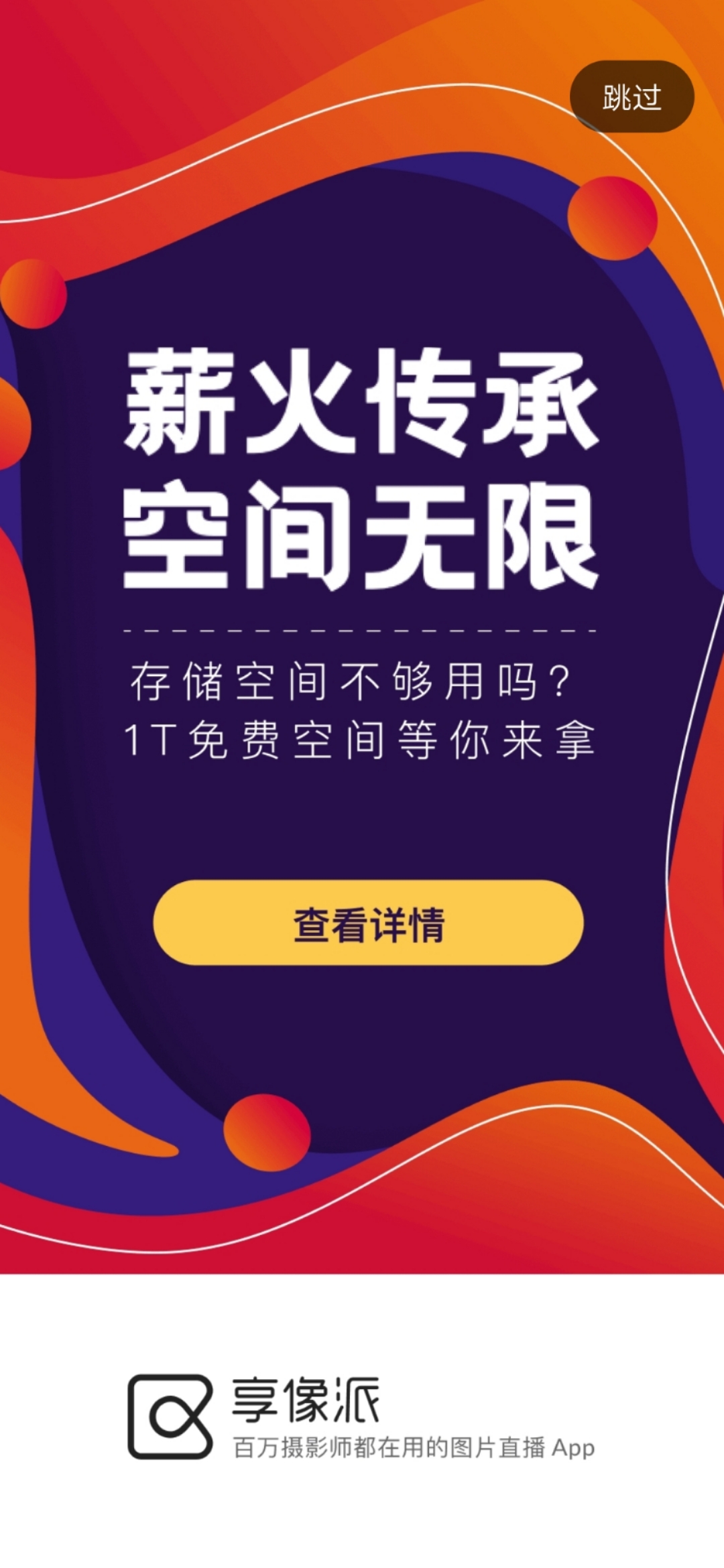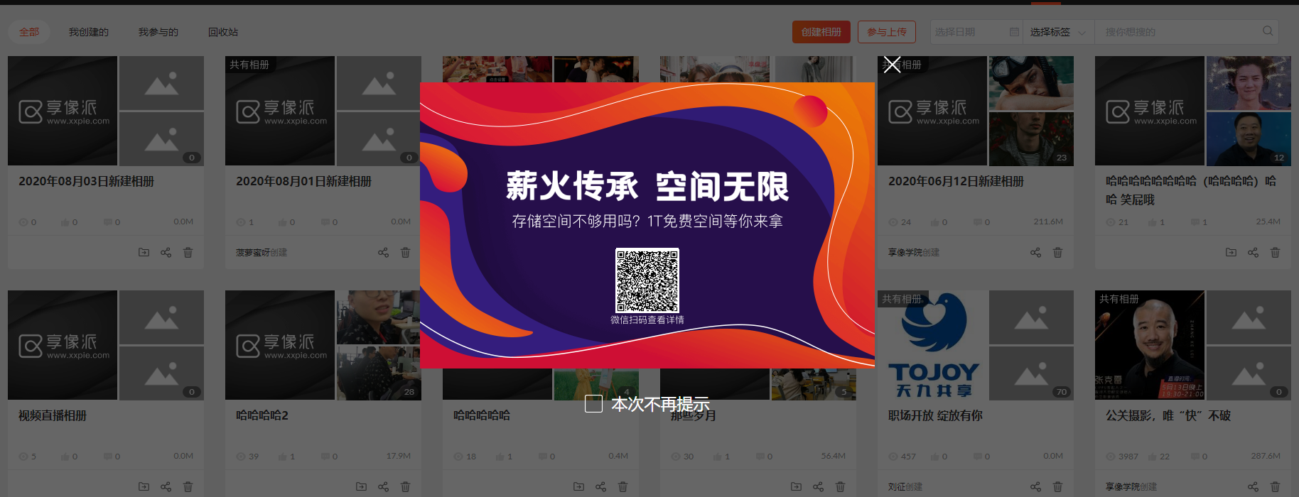 好友通过你的专属链接注册了享像派,创建一个相册并有10次浏览,5G空间立马到手!