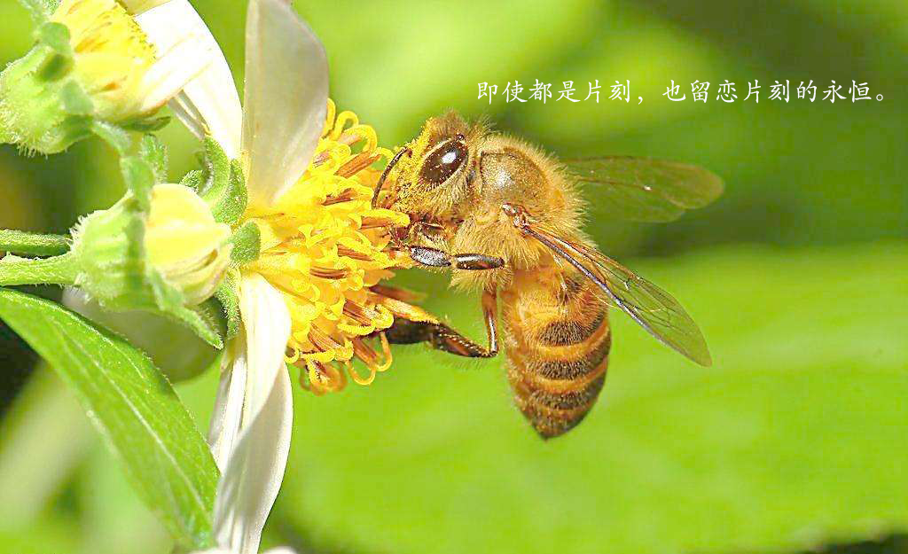 想用免费修图软件把图片处理得文艺小清新,小编我最喜欢的还是留白,文字等,关键是有很多种留白的方式以及文字样式可供选择。比如说,添加的文字和留白。我抓拍到蜜蜂停留在花朵上的瞬间。我配了这样一句话“即使都是片刻,也留恋片刻的永恒。”下面这张上下留白。