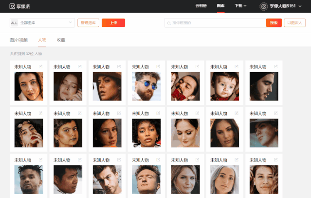 图库自动生成人物墙,点击人物头像即可看到图库中所有有该人物出镜的图片。