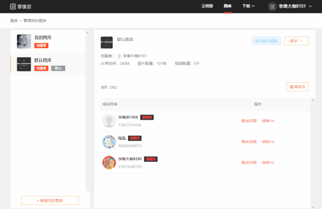 图库内影像资料全部储存在云端,支持多人同时查看、管理、上传影像;在对影像进行分类储存管理时,他人也能查看和下载图库里的图片;图库的内容也可根据上传者的不同进行显示。