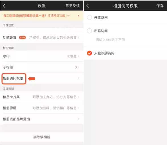 设置入口:相册设置—相册访问权限—选择人脸识别访问